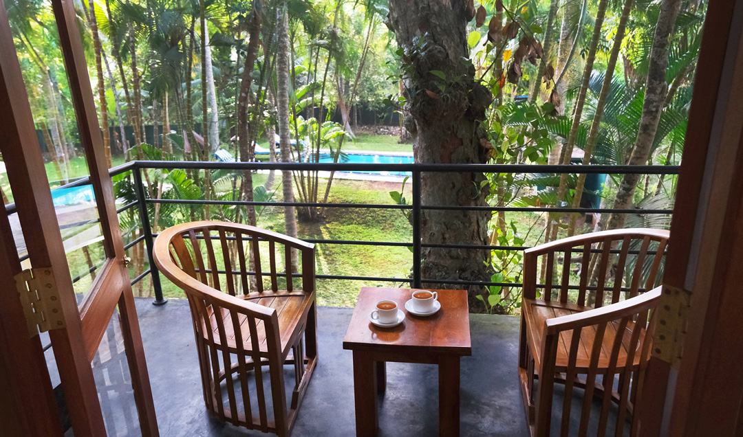 Our resort features four tastefully appointed Air conditioned rooms, each designed to provide a comfortable and peaceful haven. Surrounded by lush gardens, the rooms offer a harmonious blend of traditional Sri Lankan architecture and modern amenities.
